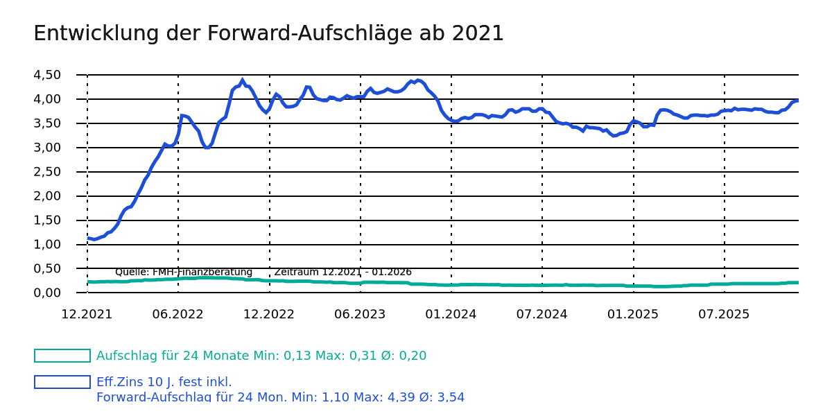 Forward-Darlehen kosteten im selben Zeitraum für zehn Jahre fest und 36 Monate Forward-Periode zwischen 3,40 und 3,90 Prozent.